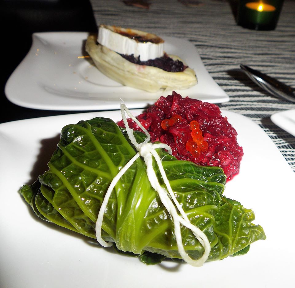 - Wirsing-Päckchen mit Räucherlachs auf Rote-Bete-Salat