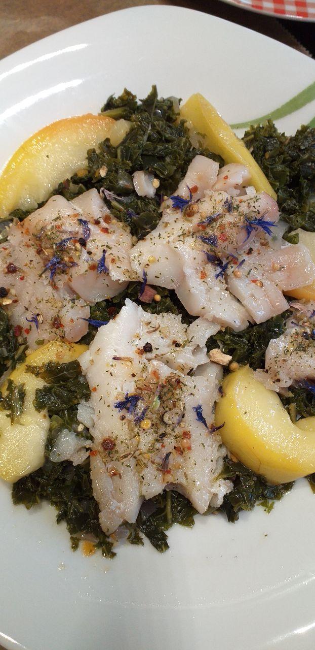 - „Biggeblau“-Fischfilet auf Grünkohl
